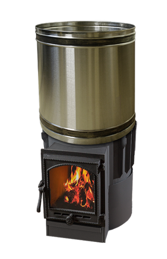 Основание и дверная коробка - из жаропрочной углеродистой стали. Чугунная дверка с термостойким стеклом. Круглая форма способствует равномерному нагреву и отсутствию внутренних напряжений в деталях. Сложная конструкция дымовых каналов способствует эффективной теплопередаче от печи в помещение бани, качественному прогреву камней. Топится данная печь непосредственно из помещения бани, размеры дров до 35 см длиной.