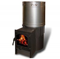 Чугунная печь для бани 20 кВт, без бака, нержавеющий кожух, выносной портал с дверцей и стеклом "Онего". Объем парилки до 20 м3. Диаметр дымохода 130 мм.